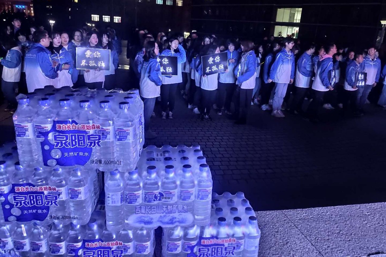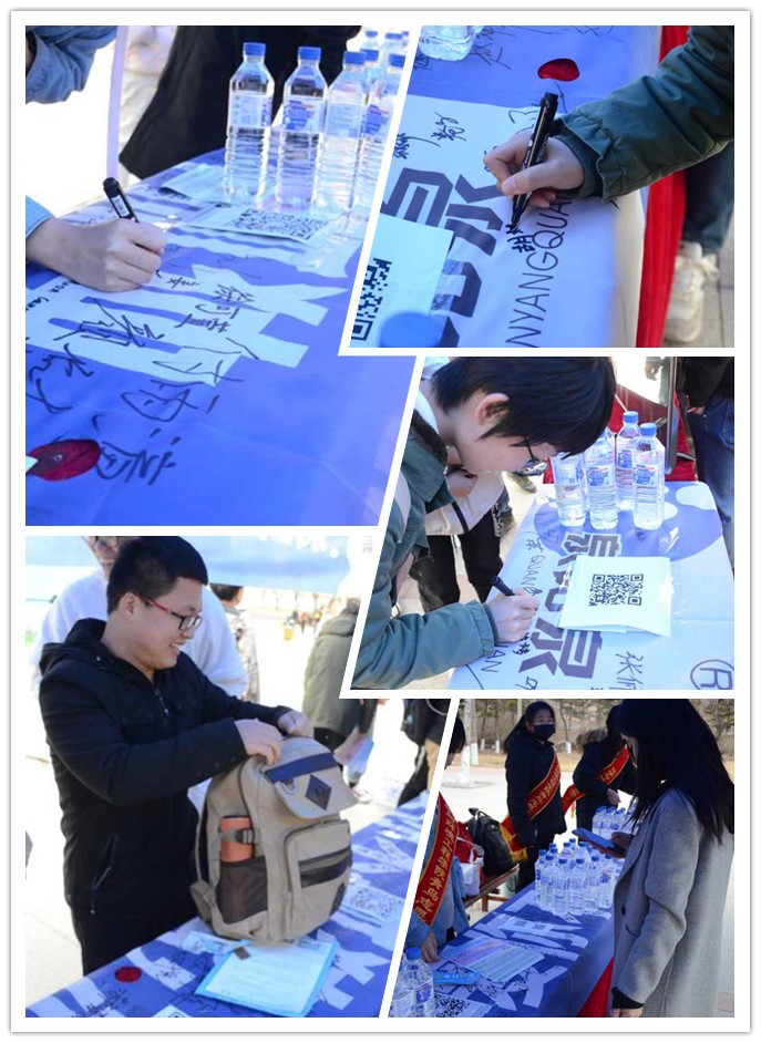 四月的長春雖已步入了春天,但天氣依舊寒冷,盡管志愿者們凍得瑟瑟發抖,但每個成員都積極地參加到活動中,將源自長白山的泉陽泉天然礦泉水送至每個同學手中。